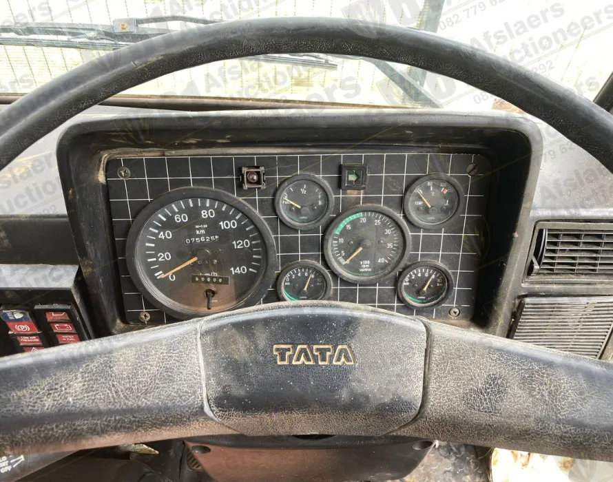 Tata 6 m³ tipper, Tata-Cummins B-series turbo diesel inline 6, approx. 5.9L, 180 hp, 650 Nm, 6-speed manual synchromesh (GBS-750), 4x2 tipper chassis, PTO-driven hydraulic tipper body